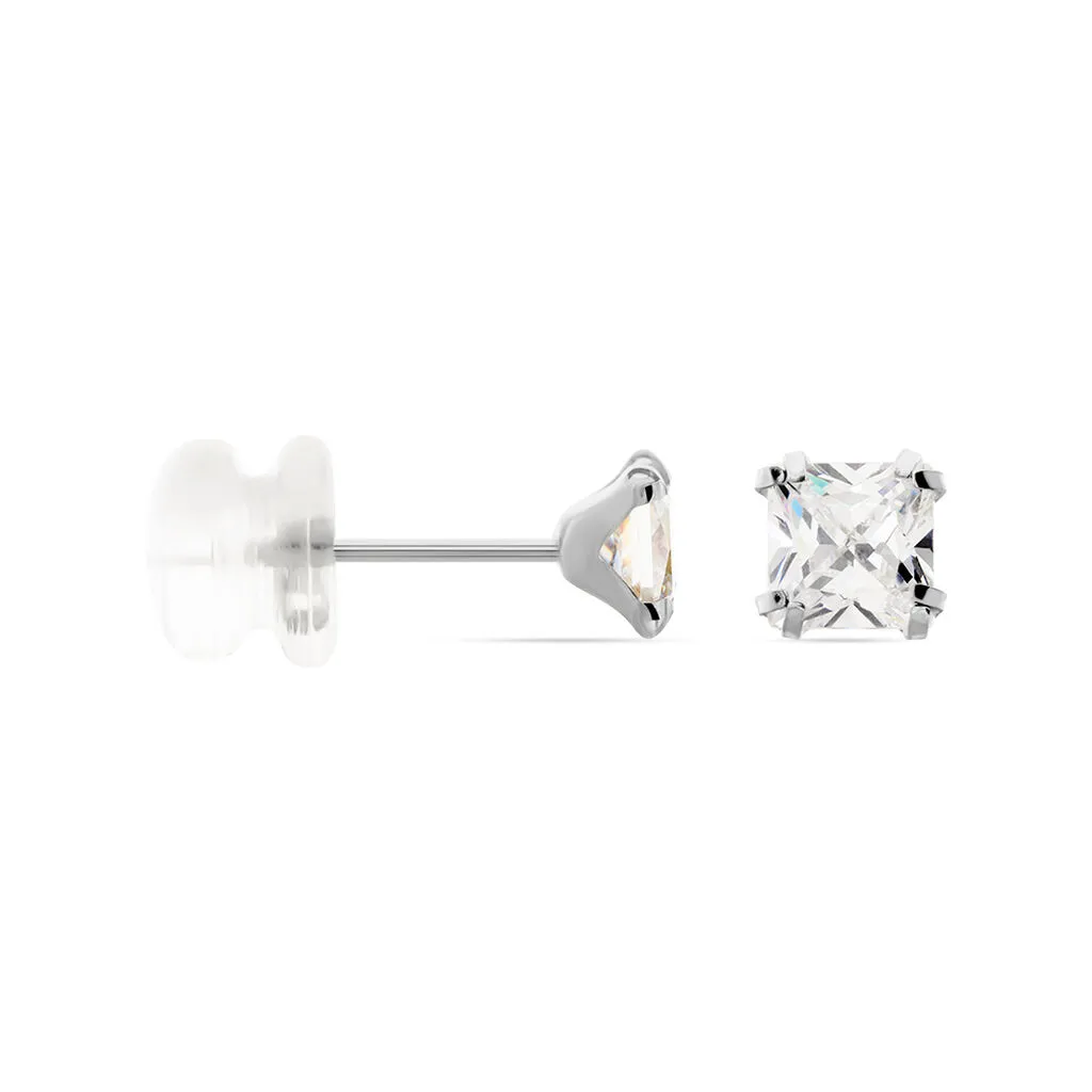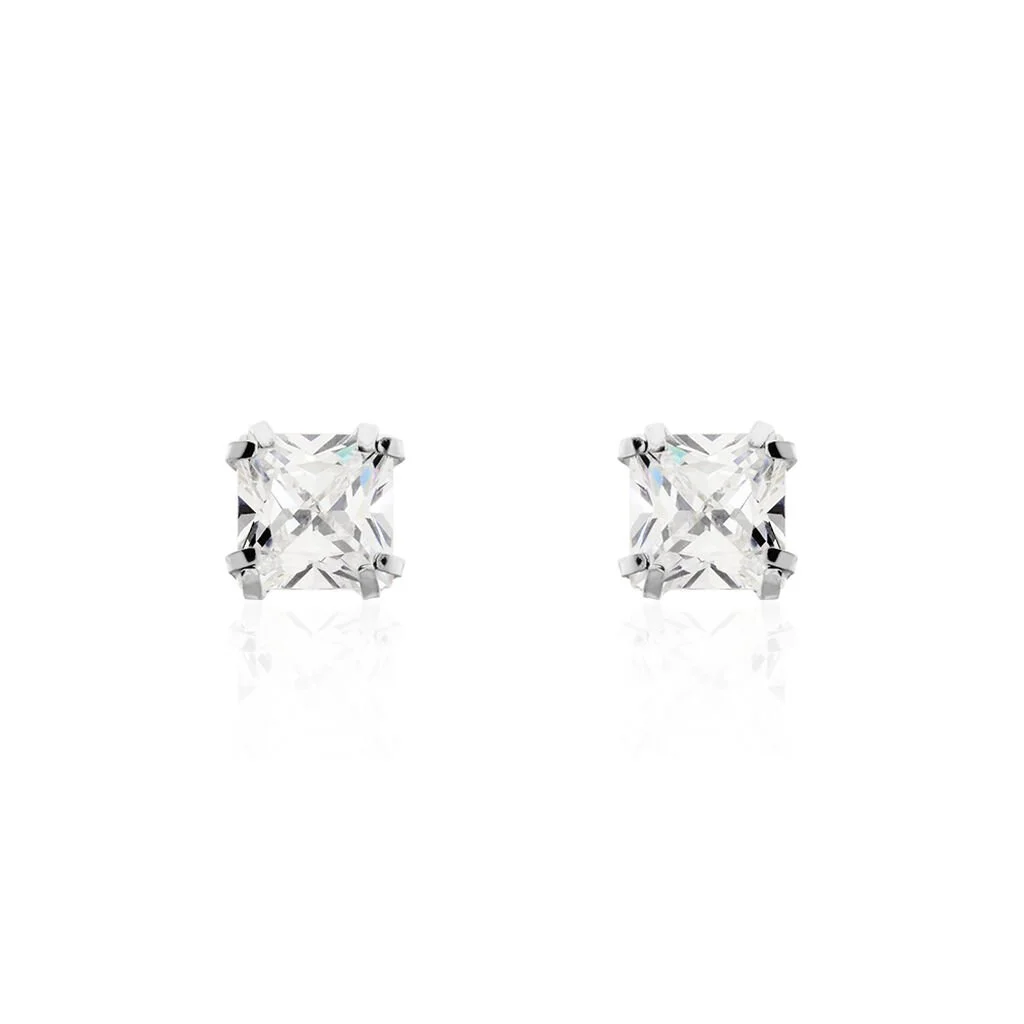 Boucles D’oreilles Puces Or Blanc 375/1000 Oxyde De Zirconium Carres 4mm