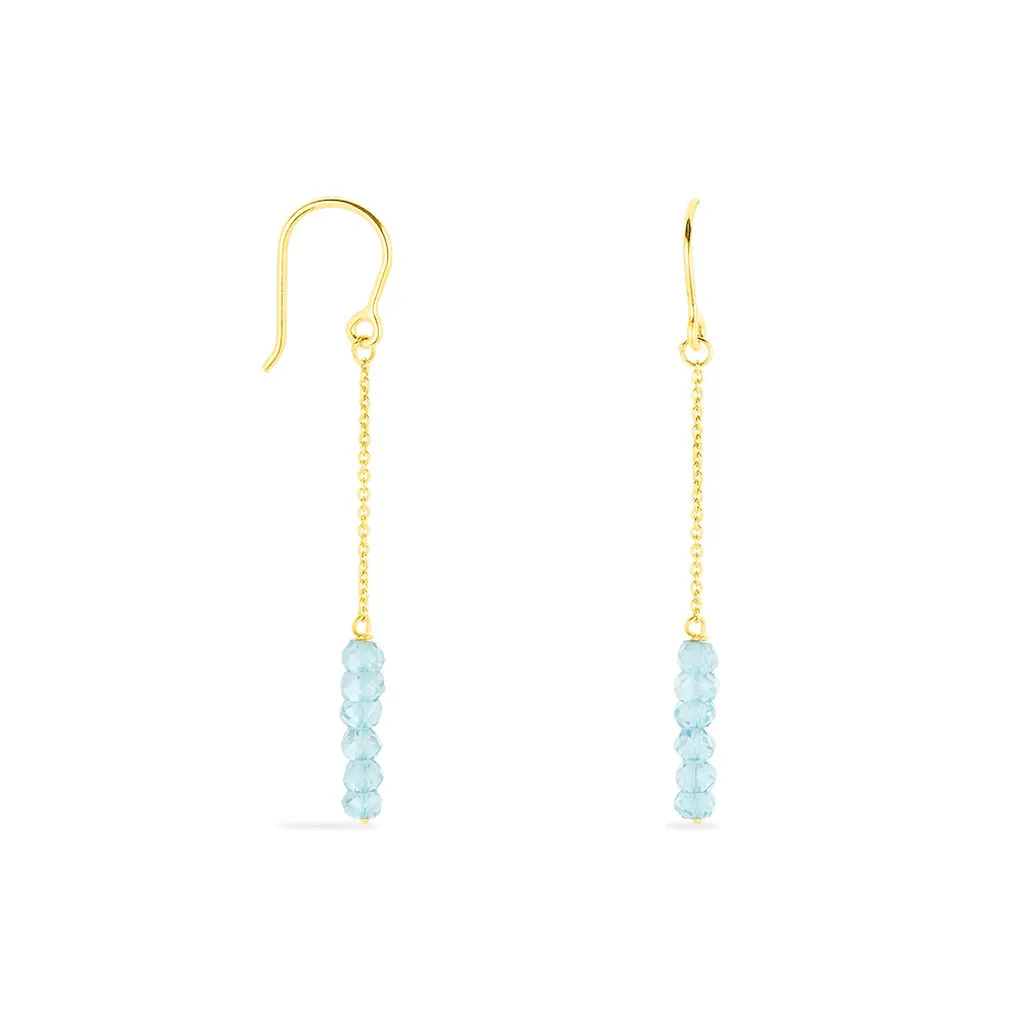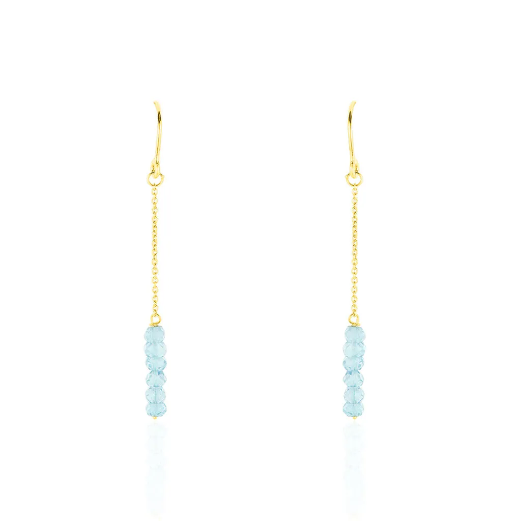 Boucles D’oreilles Pendantes Or Jaune Maille Forcat Topaze Bleu 4.2ct