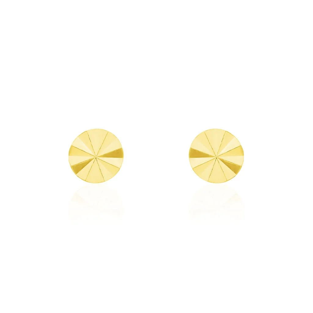 Boucles D’oreilles Puces Or Jaune 375/1000 Rond Effet Diamante 5mm