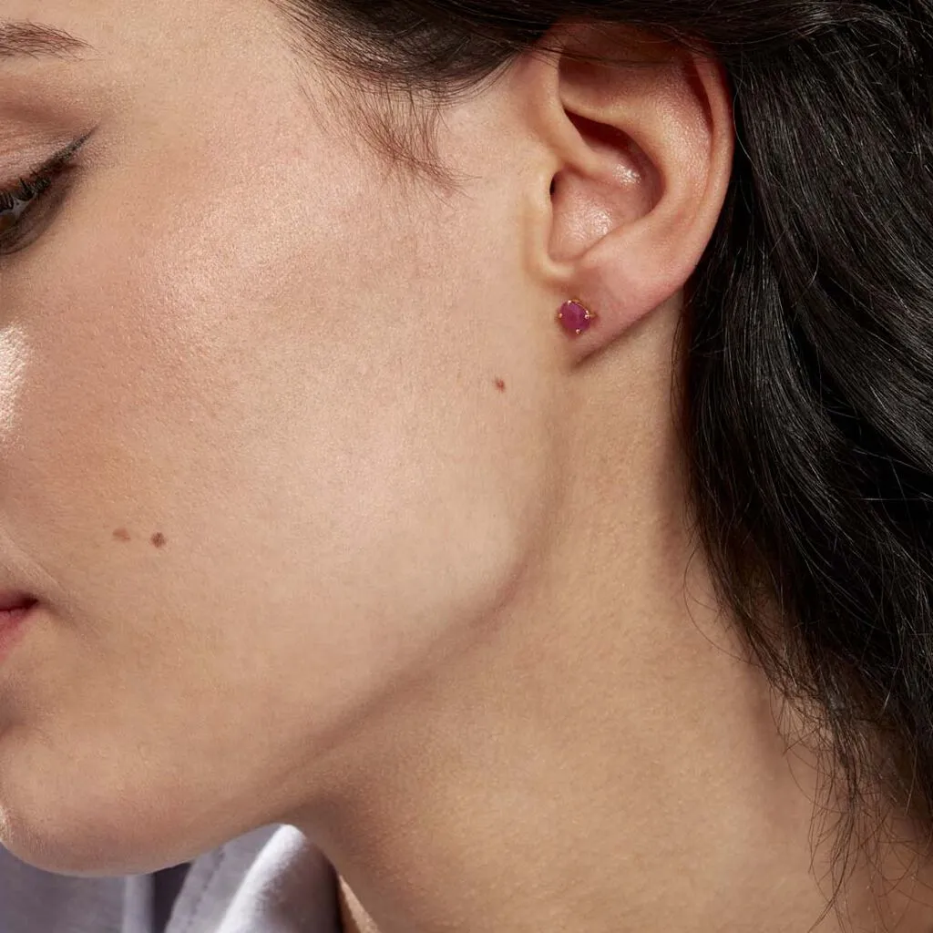 Boucles D’oreilles Puces Ovale Or Jaune Rubis