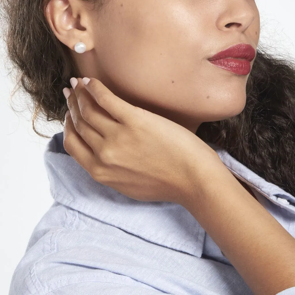 Boucles D’oreilles Puces Argent 925/1000 Perle De Culture Nacre 9mm