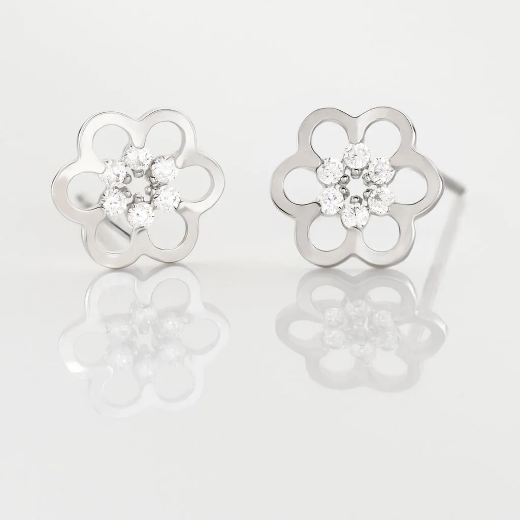 Boucles D’oreilles Puces Philine Fleur Or Blanc Oxyde De Zirconium
