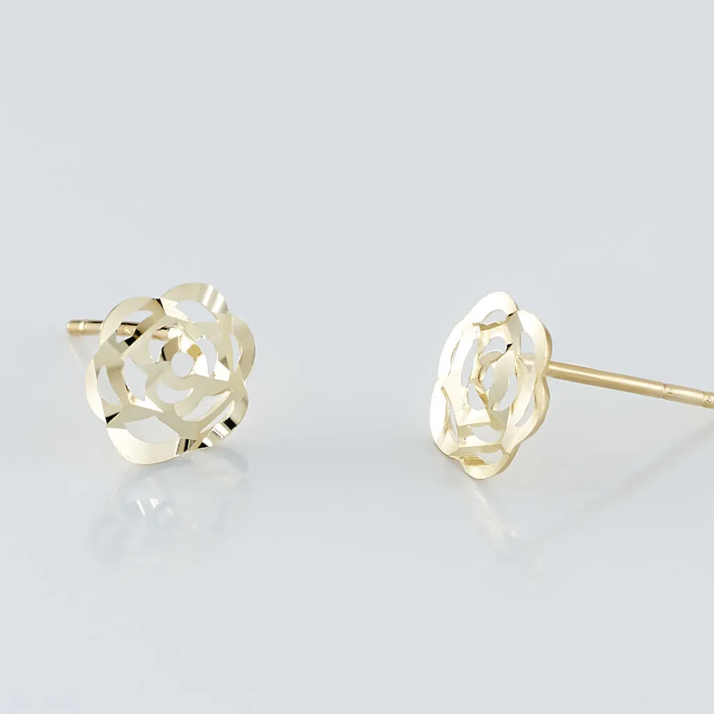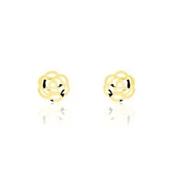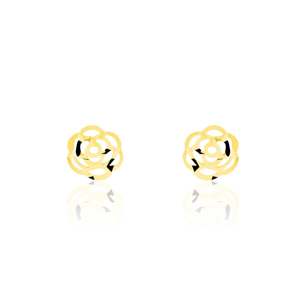 Boucles D’oreilles Or Jaune 375/1000 Puces Formes Fleurs Ajourées Diamantées Style Roses