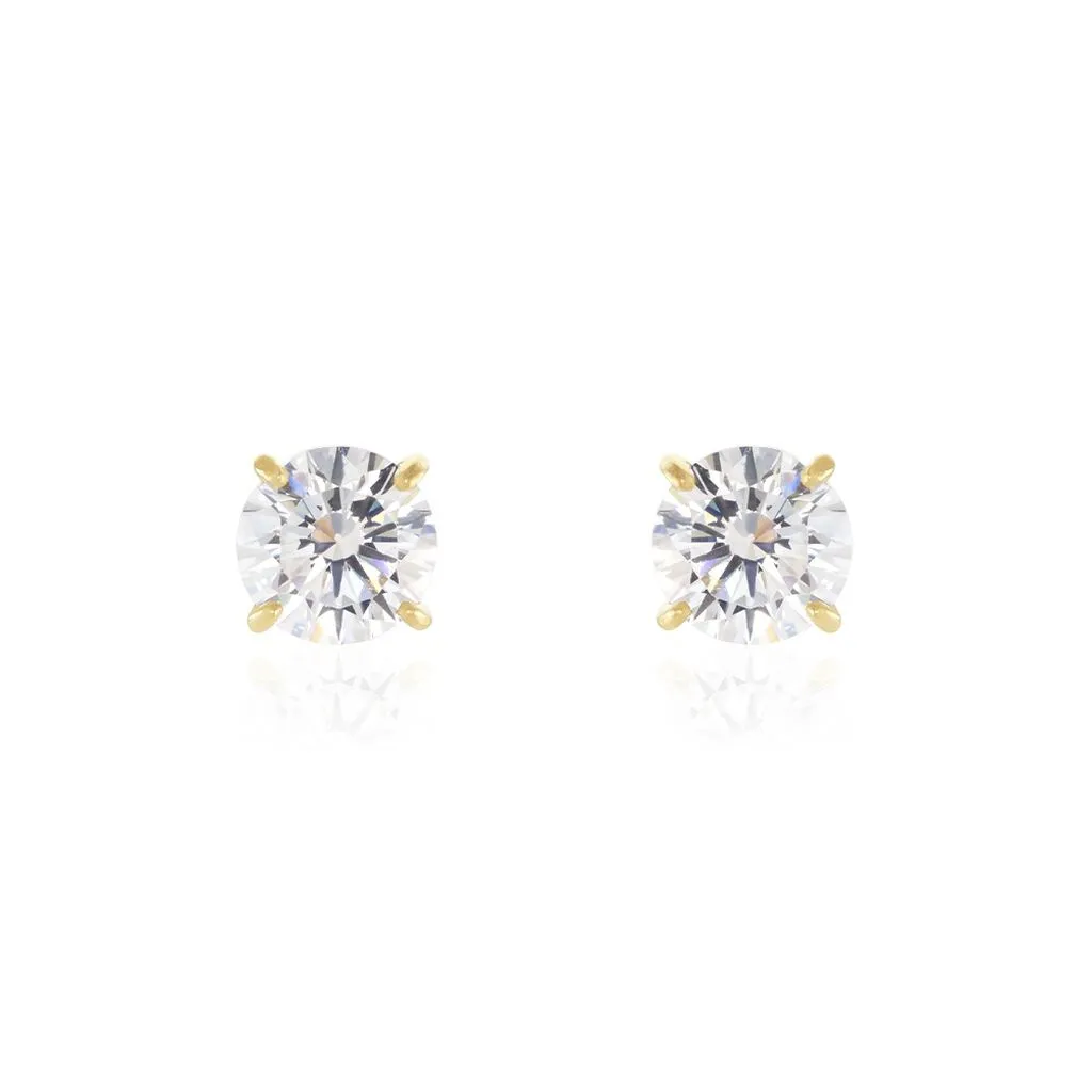 Boucles D’oreilles Puces Plaqué Or Oxydes De Zirconium Blancs Sertis 4 Griffes
