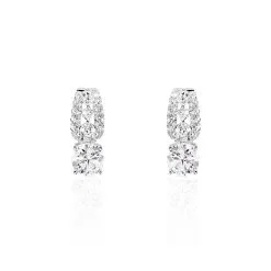 Boucles D’oreilles Or Blanc 375/1000 Oxydes De Zirconium Centraux 4mm + Oxydes De Zirconium