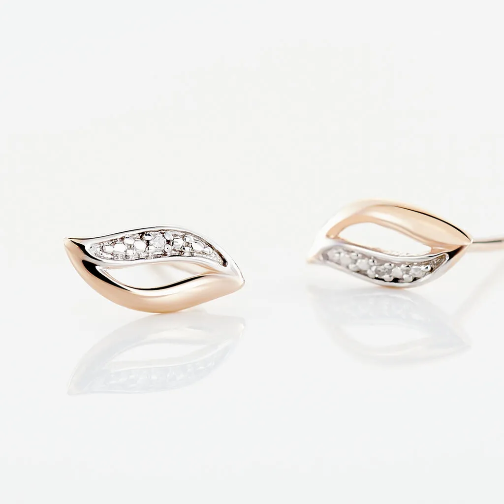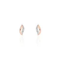 Boucles D’oreilles Or Rose 375/1000 Ajourées + Diamants