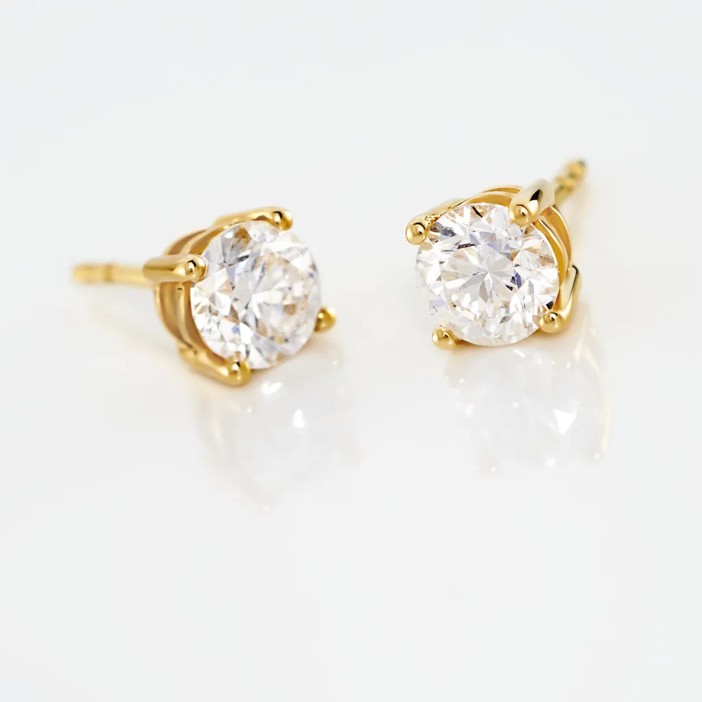 Boucles D’oreilles Or Jaune 750/1000 Puces Diamants 0.80cts Sertis 4 Griffes Systemes Alpas