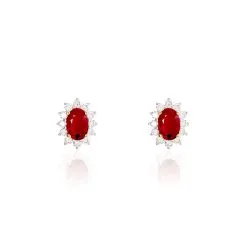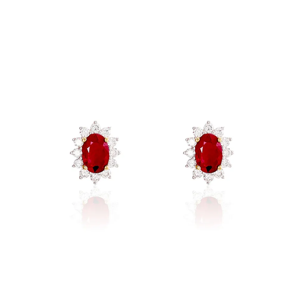 Boucles D’oreilles Or Jaune 375/1000 Rubis Simple Entourage Diamants Blancs Vassili Pm