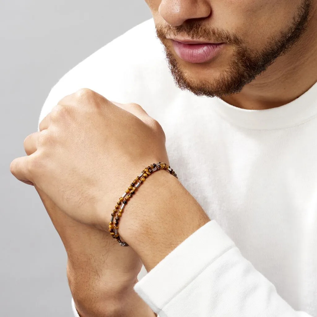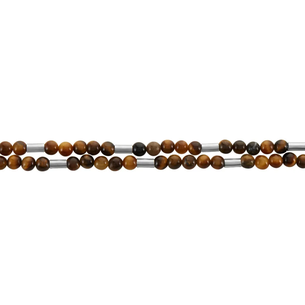 Bracelet Acier Blanc Double Rang Perles Oeil De Tigre 21.5cm