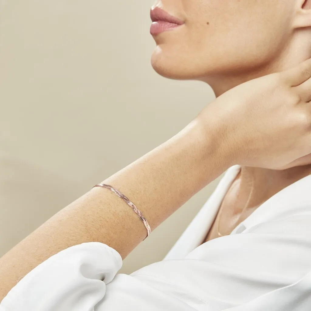 Bracelet Or Rose 375/1000 Maille Tresse 3.6mm 18cm