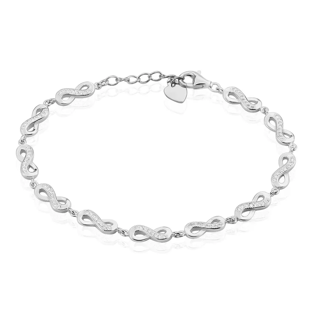 Bracelet Argent Blanc 925/1000 Chaine D’infinis Pavage Oxydes De Zirconium 19cm