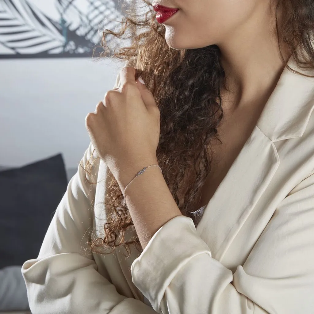 Bracelet Argent Blanc 925/1000 Feuille Maille Forcat 18cm