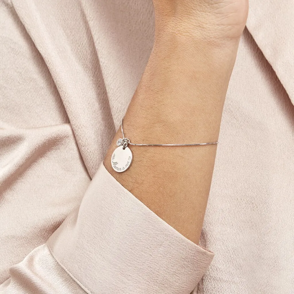 Bracelet Argent 925/1000 Pastille Message Ma Maman A Moi Pampille Serti Clos Oxyde De Zirconium Maille Vénitienne 16+3cm