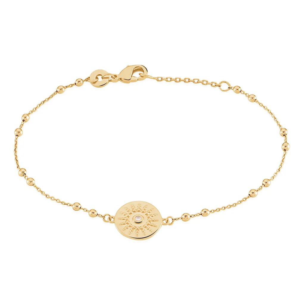 Bracelet Plaqué Or Jaune Forme Pastille Motif Soleil Effet Perle Oxyde De Zirconium 18cm