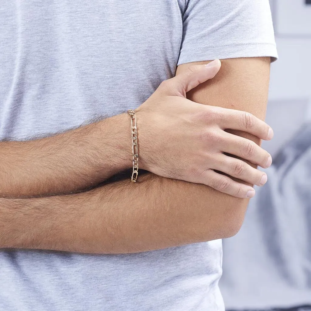 Bracelet Plaque Or Jaune Maille Alternee 1/3 6mm 21cm