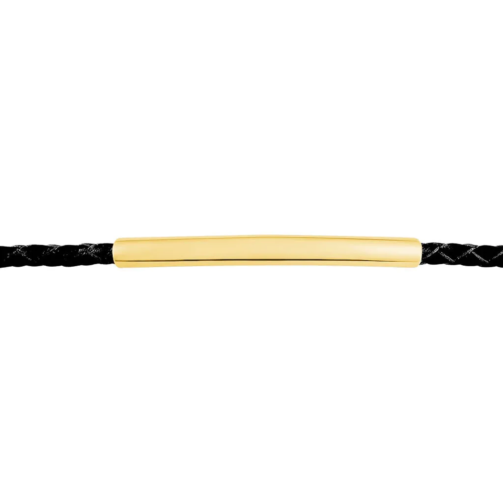Bracelet Acier Dore Et Cuir Noir Fin Barrette 21cm