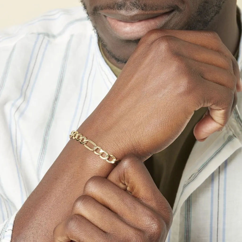 Bracelet Or Jaune 375/1000 Maille Alternée 1/3 6mm 21cm