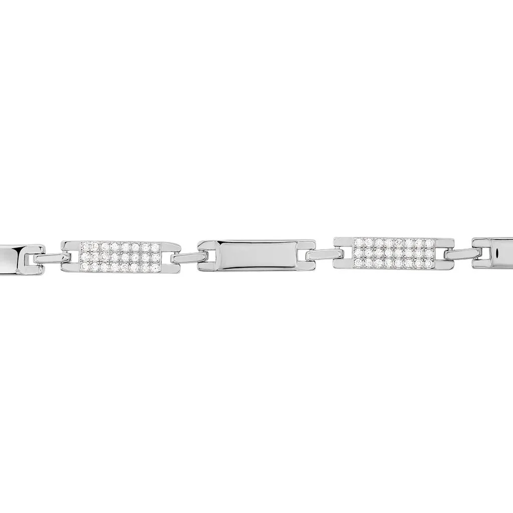 Bracelet Argent Blanc 925/1000 Plaques Lisse + Plaques Pavage Oxydes De Zirconium 18cm