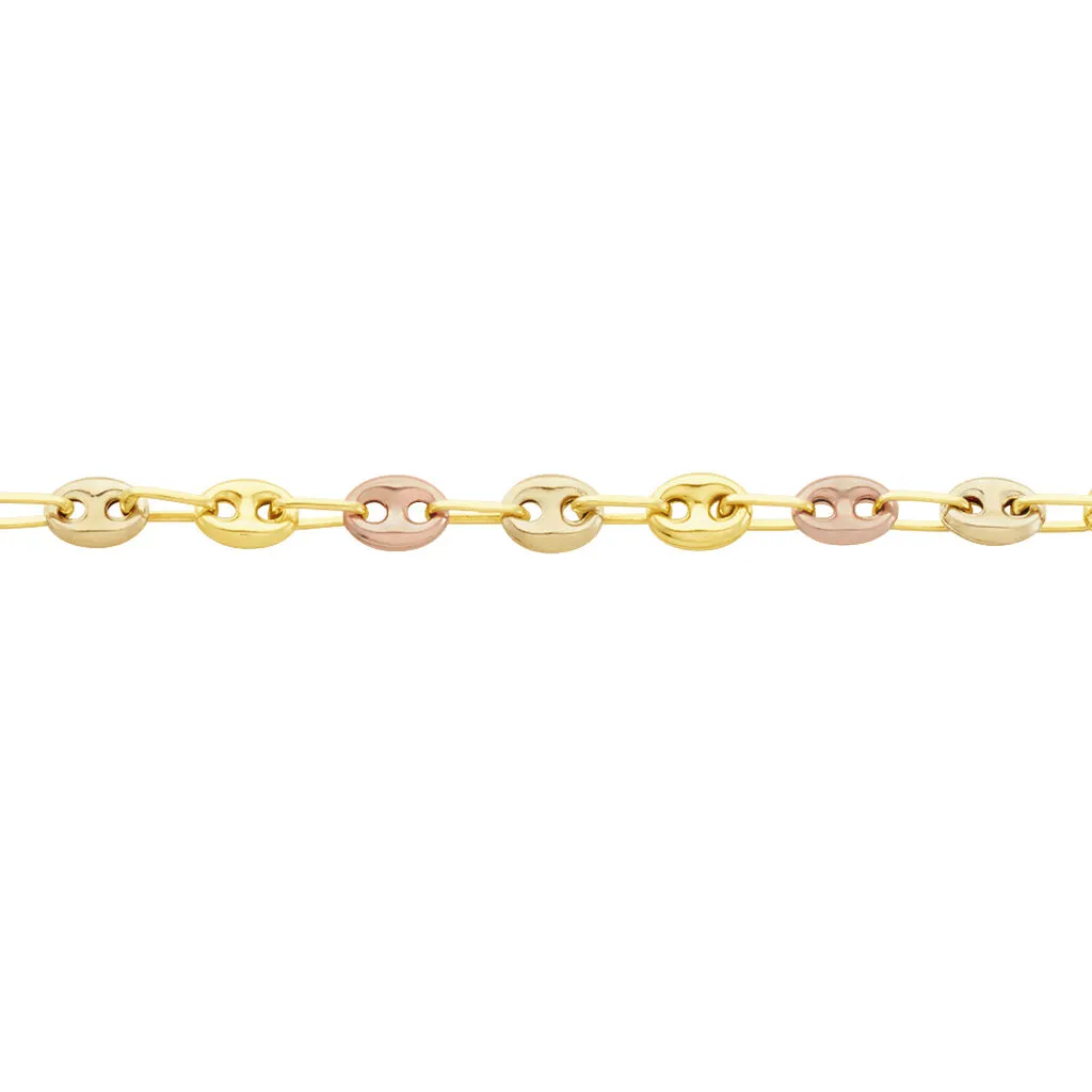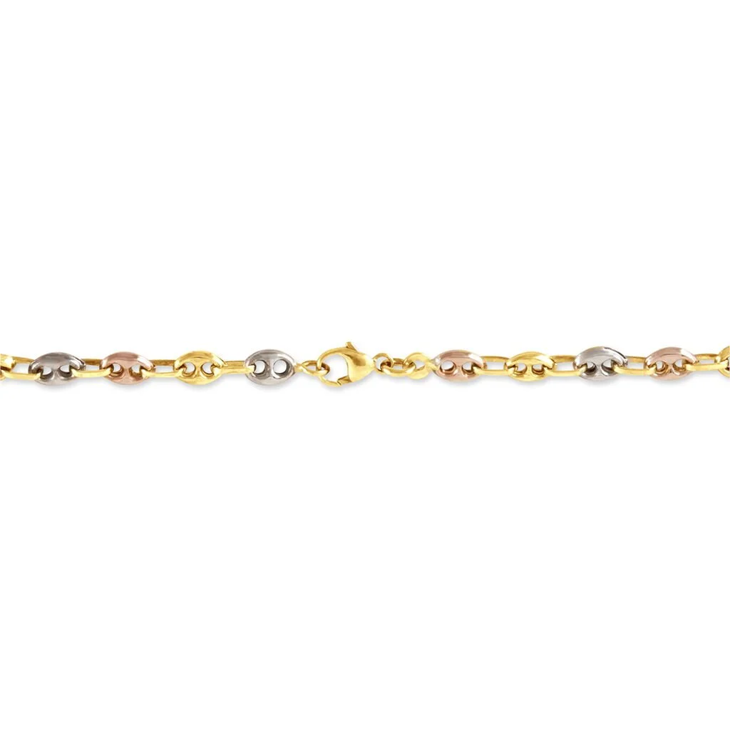 Bracelet Or Tricolore 375/1000 Maille Grain De Café 3.8mm 18cm