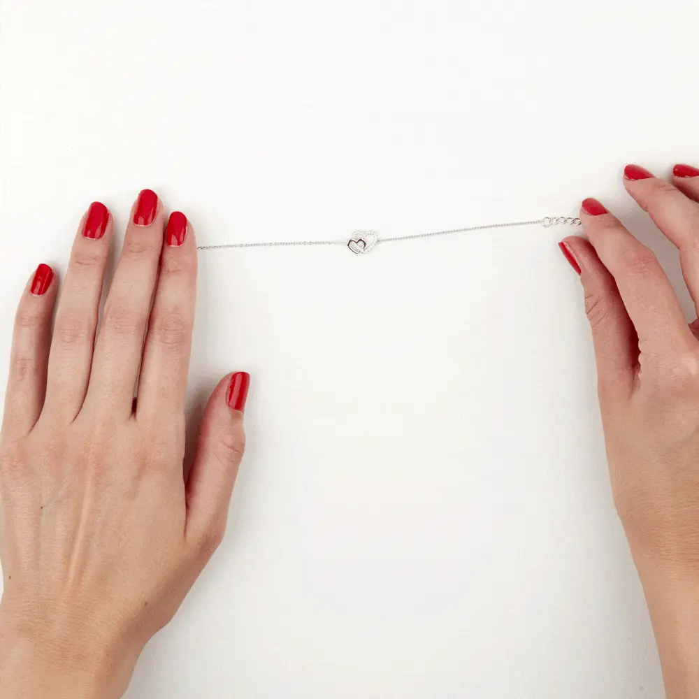 Bracelet Argent Blanc 925/1000 Cœurs Ajoures Pavage Oxydes De Zirconium 18.5cm