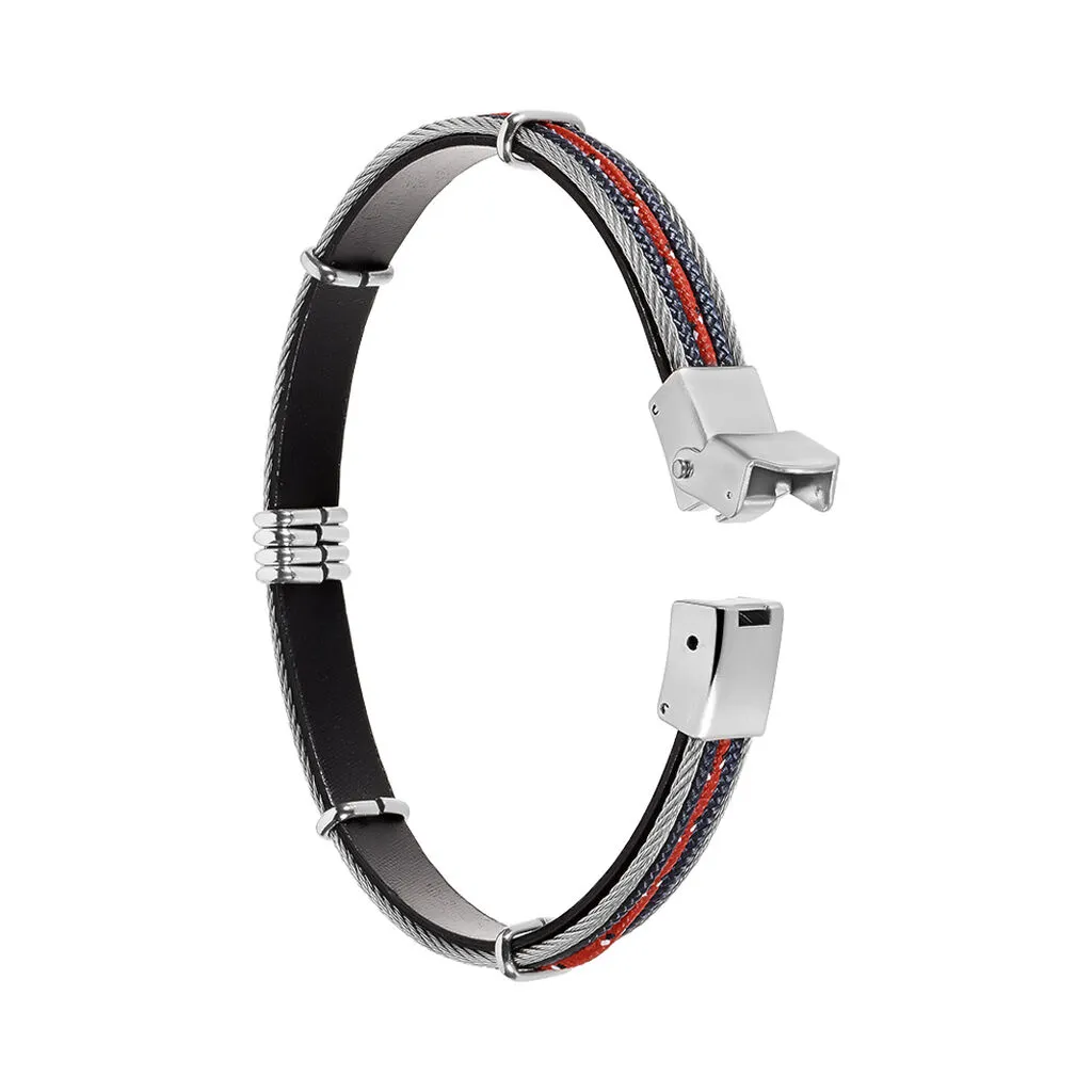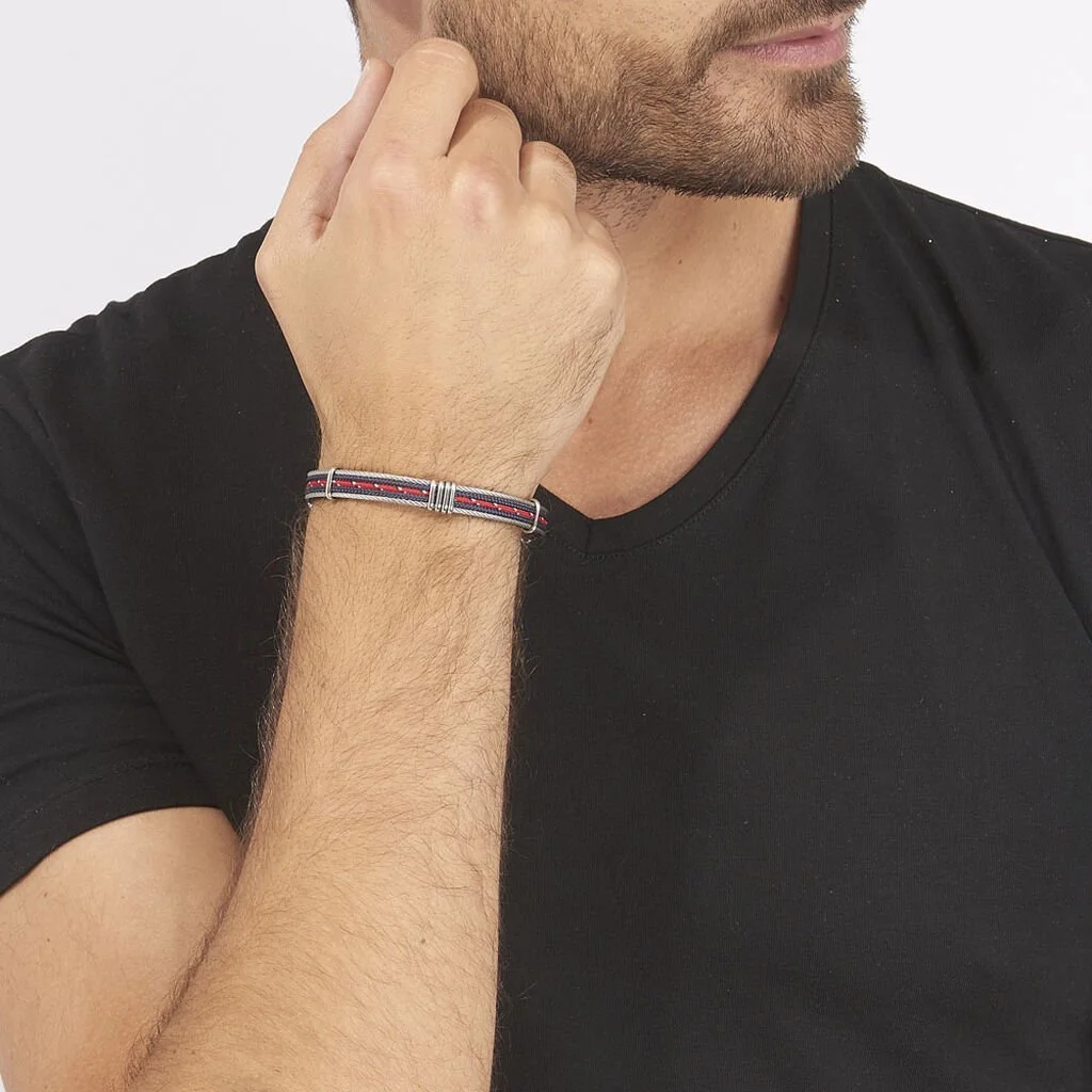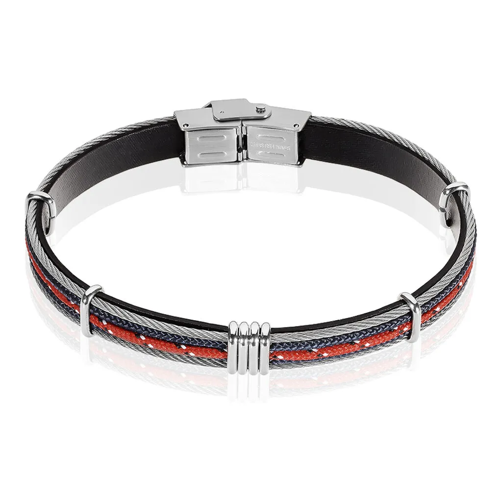 Élégance et modernité sont les mots qui caractérisent ce bracelet. Il se distingue par ses cordons rouges, ses câbles et ses détails en acier. Ce modèle est idéal pour compléter vos looks branchés. Vous pouvez le porter avec votre style préféré pour être distingué en toutes occasions. Ce bracelet est disponible dans d’autres coloris.
