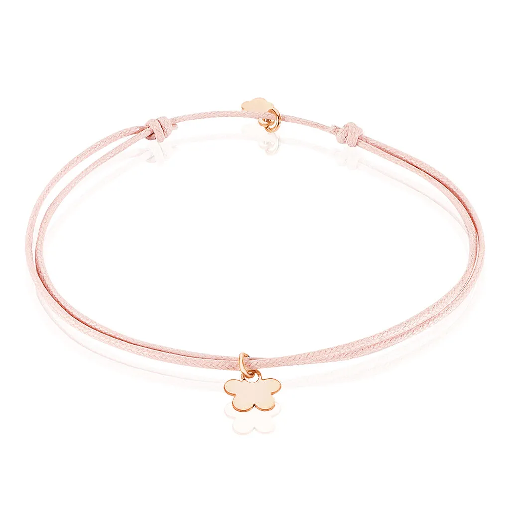 Bracelet Argent 925/1000 Rose Fleur Cordon Rose Ajustable
