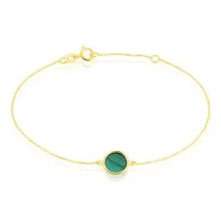 Bracelet Or Jaune 375/1000 Forme Cercle Malachite Verte Maille Jaseron 18cm