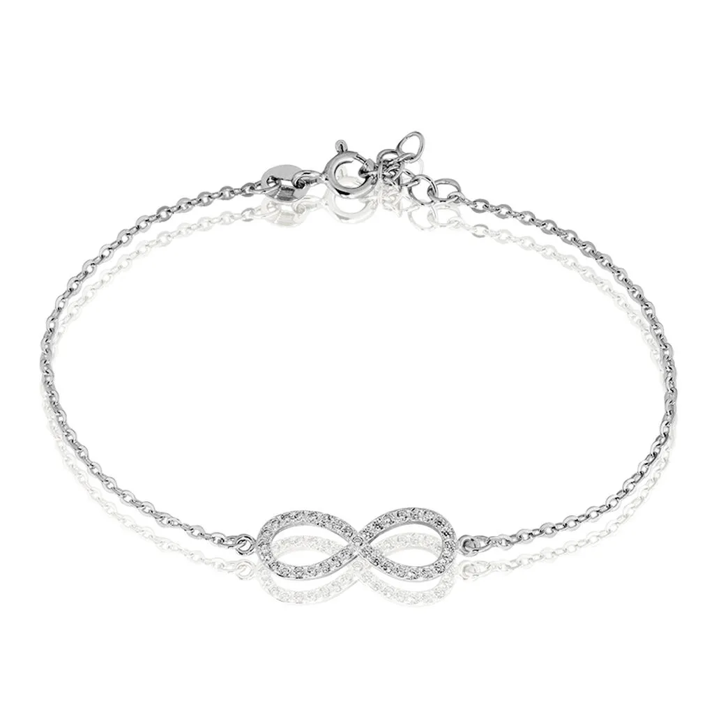 Bracelet Argent Blanc 925/1000 Oxydes De Zirconium Forme Infini 19cm