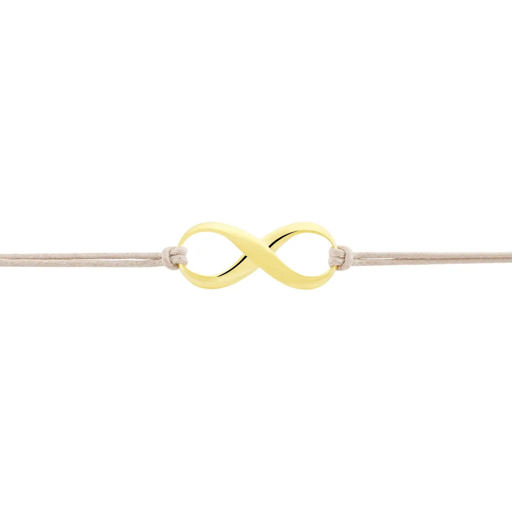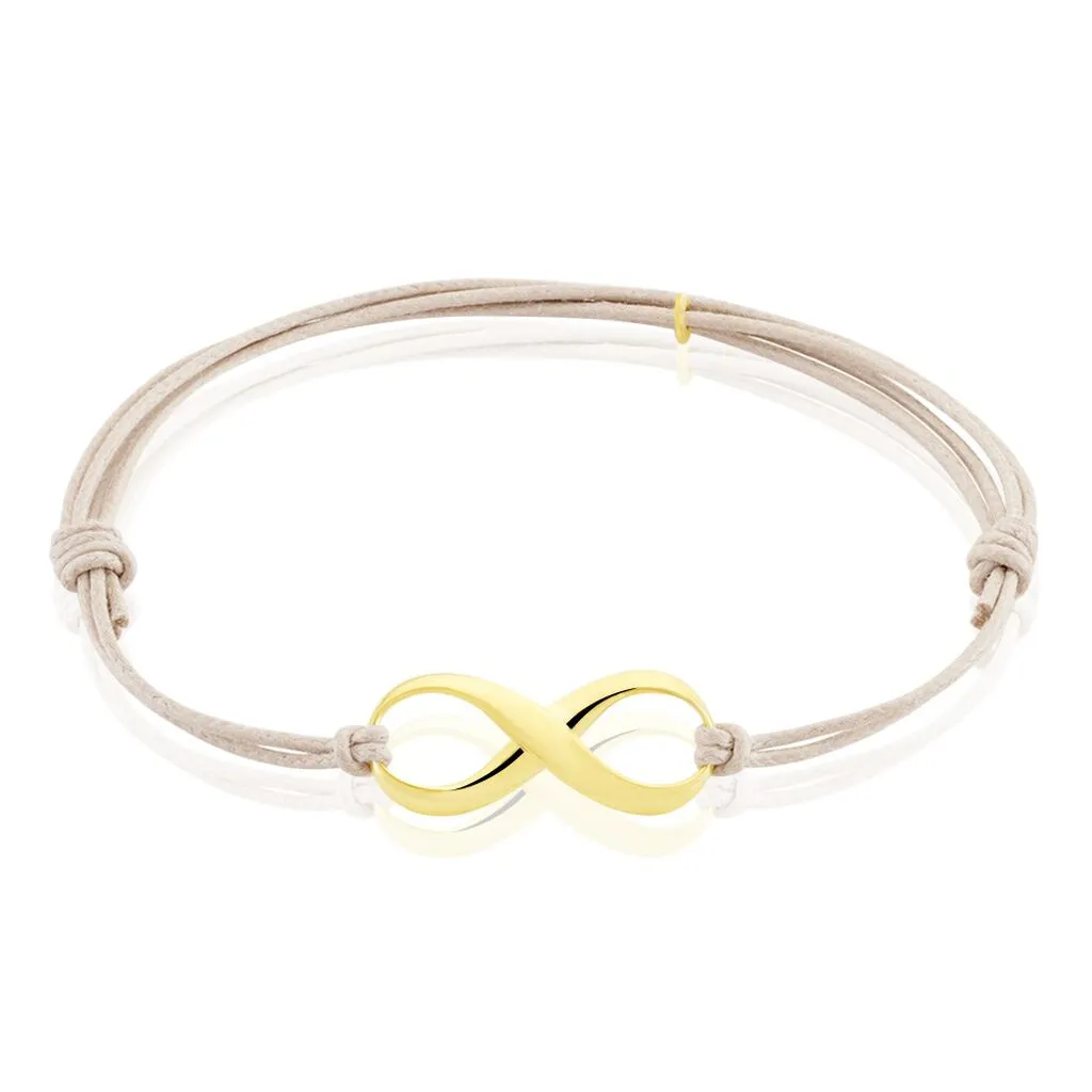 Bracelet Or Jaune 375/1000 Forme Huit Sur Cordon Coton Beige