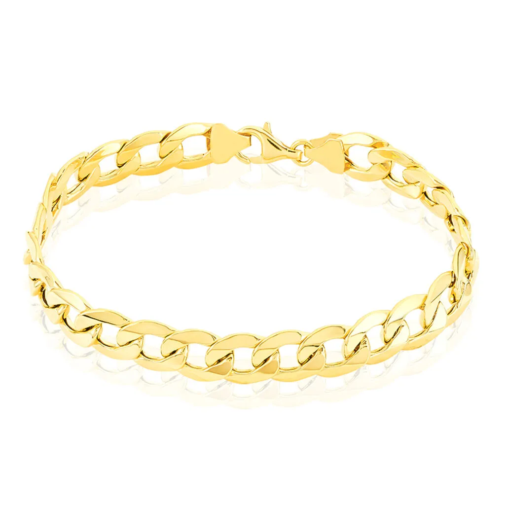 Bracelet Or Jaune 375/1000 Maille Gourmette 9mm 22cm