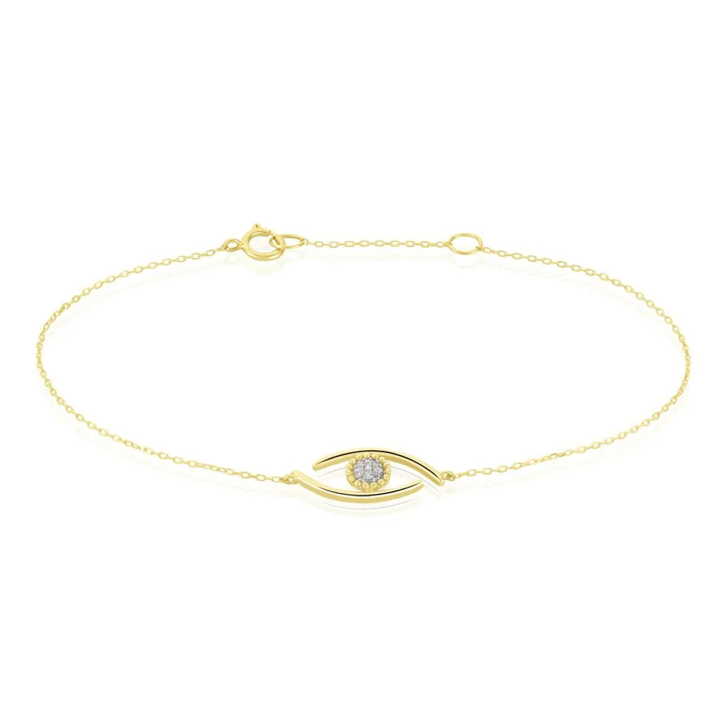 Bracelet Or Jaune 375/1000 Forme Ovale Intérieure Cercle Pavage Diamant Blanc Maille Forçat 16+2cm