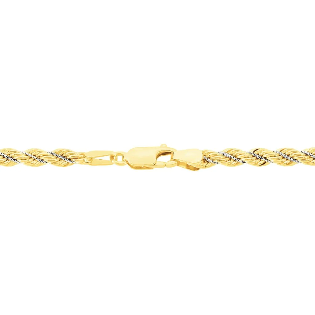 Bracelet Or Bicolore 375/1000 Maille Corde Et Vénitienne 4mm 18cm