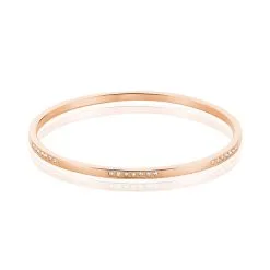Bracelet Jonc Acier Dore Rose Et Cristal