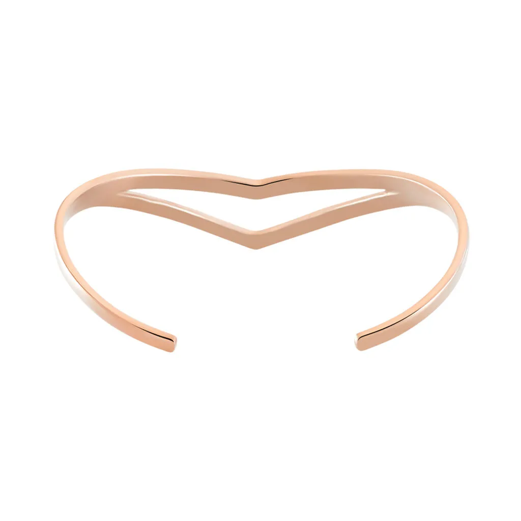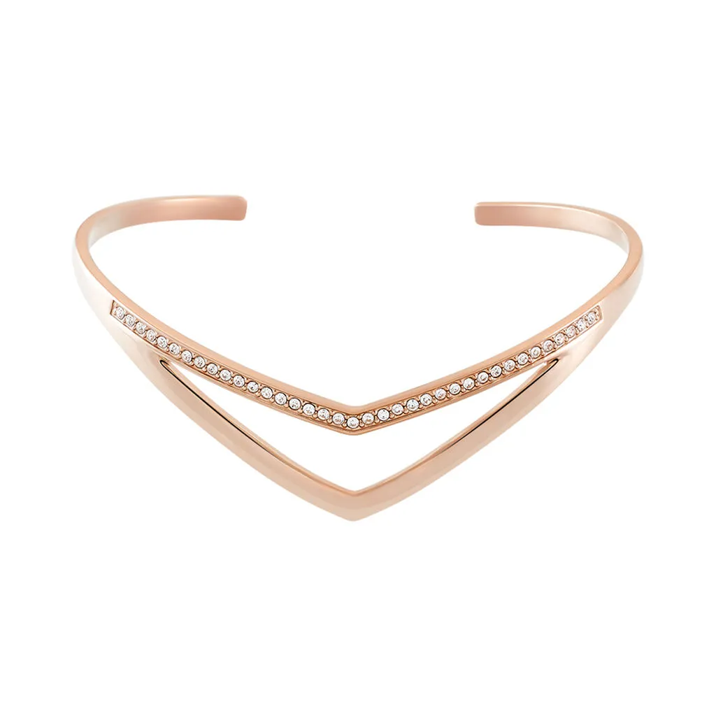 Bracelet Jonc Acier Dore Rose Et Cristal Forme V
