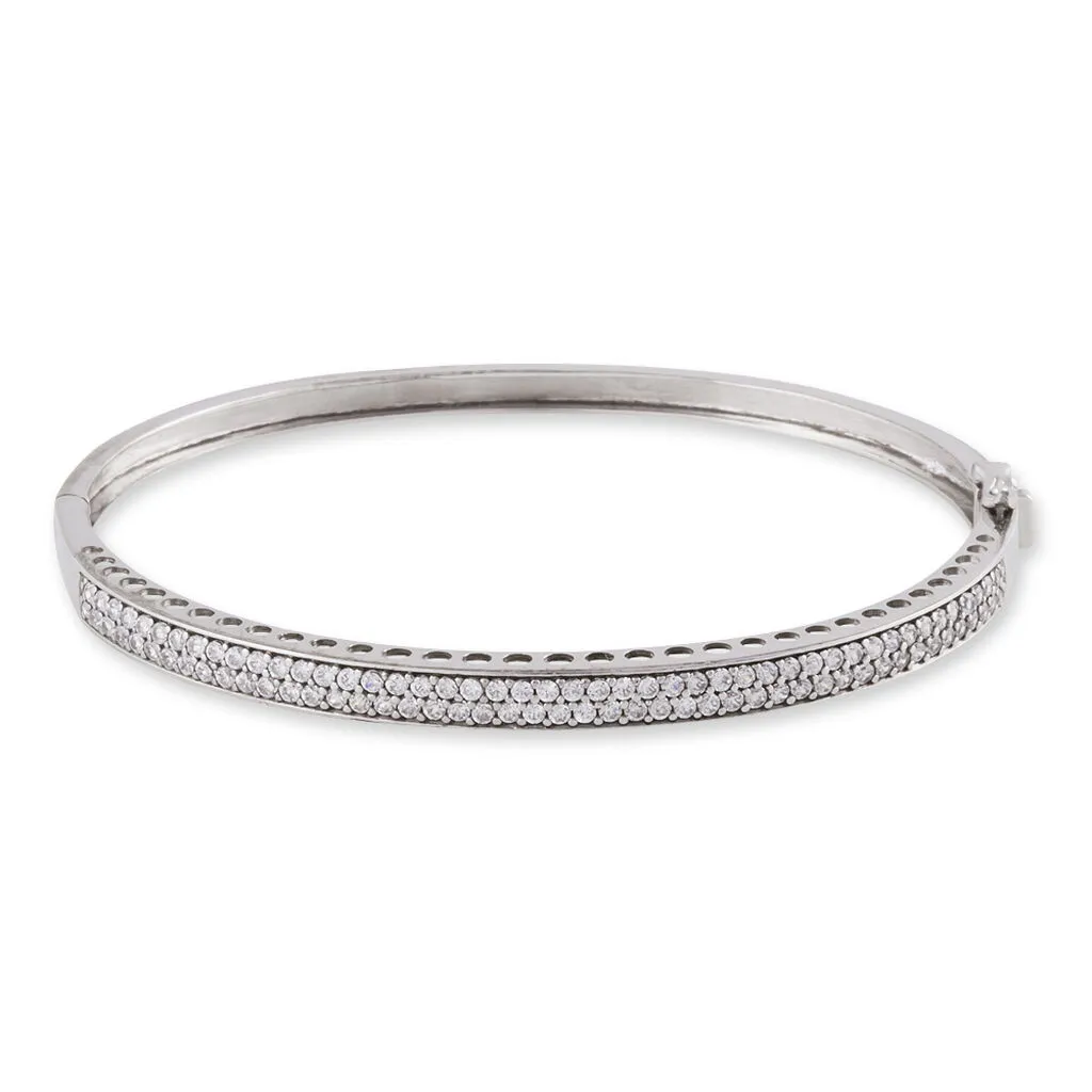 Bracelet Jonc Argent Blanc 925/1000 2 Rangs D’oxydes De Zirconium