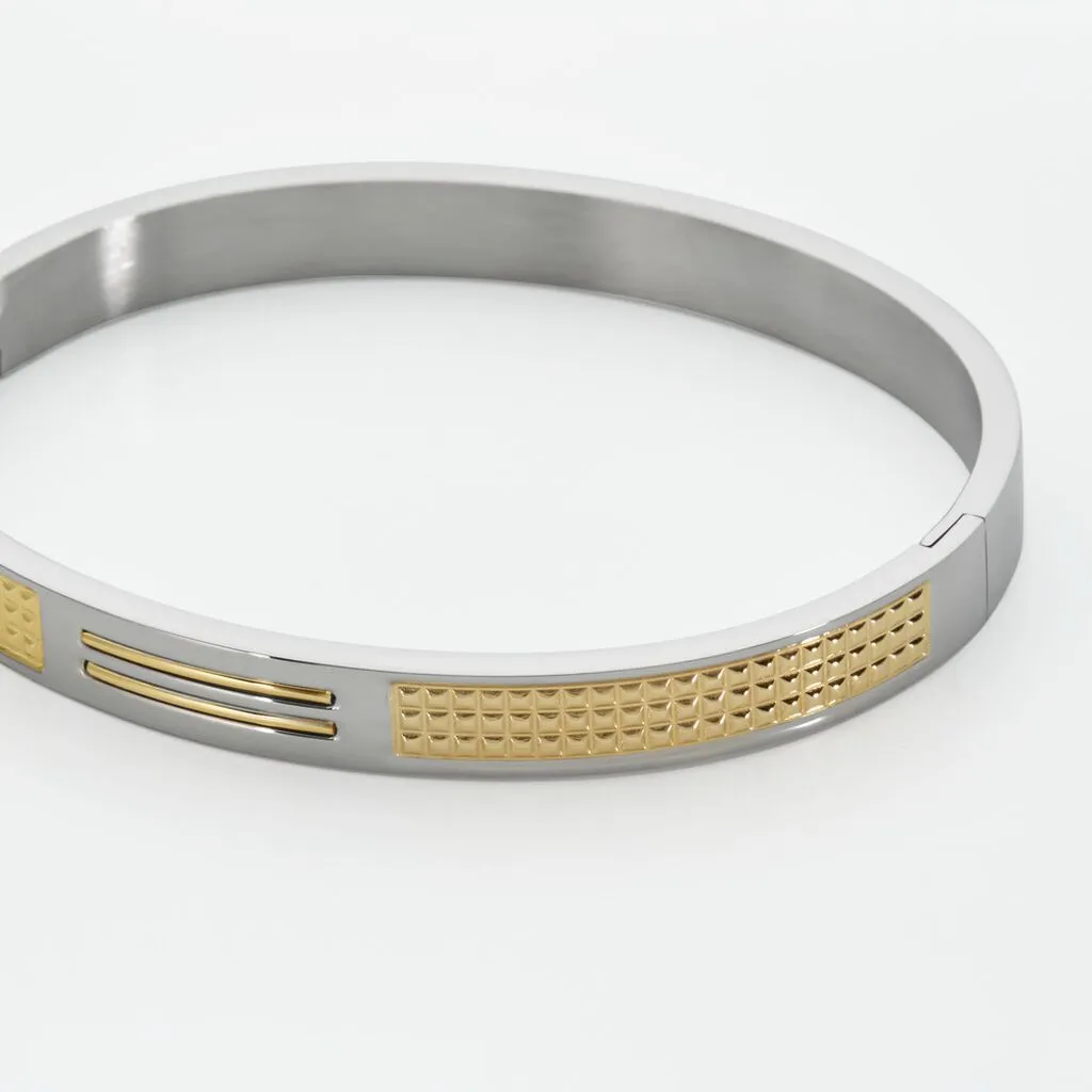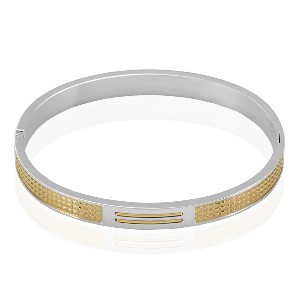 Bracelet Jonc Fermé Acier Blanc Et Plaqué Or Motifs Géométriques Diamètre 63mm