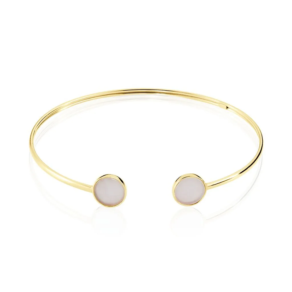 Bracelet Jonc Or Jaune 375/1000 Double Pastilles Calcedoine