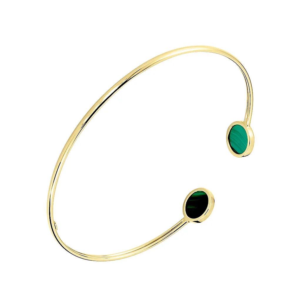 Bracelet Jonc Or Jaune 375/1000 Double Pastilles Malachite
