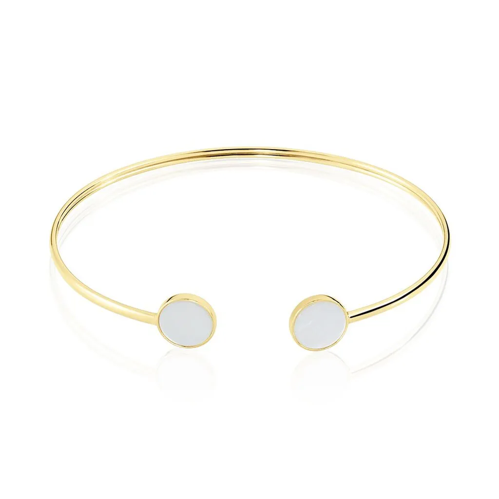 Bracelet Jonc Or Jaune 375/1000 Double Pastilles Nacre