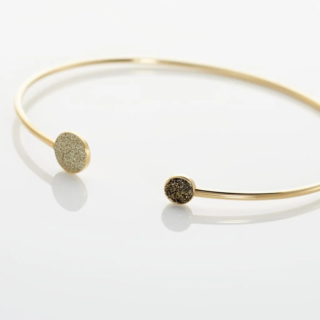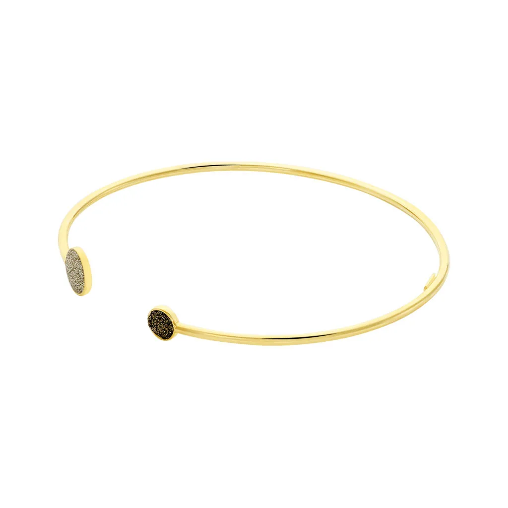 Bracelet Or Jaune 375/1000 Jonc Double Pastilles Glitter Dore Et Bronze