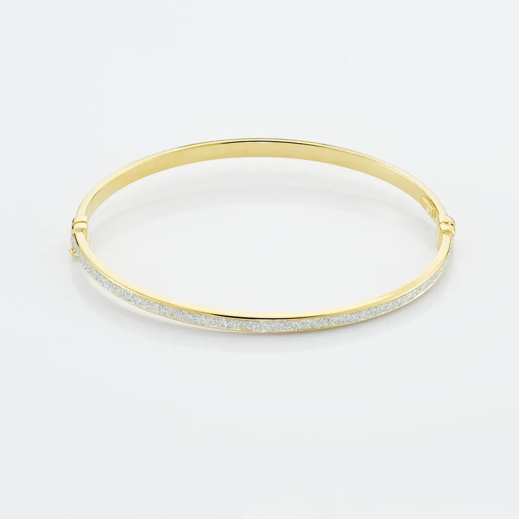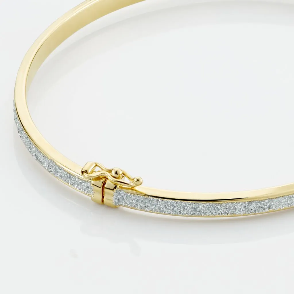 Bracelet Jonc Or Jaune 375/1000 Fil Plat 3.5mm Glitter Silver Diamètre 60mm
