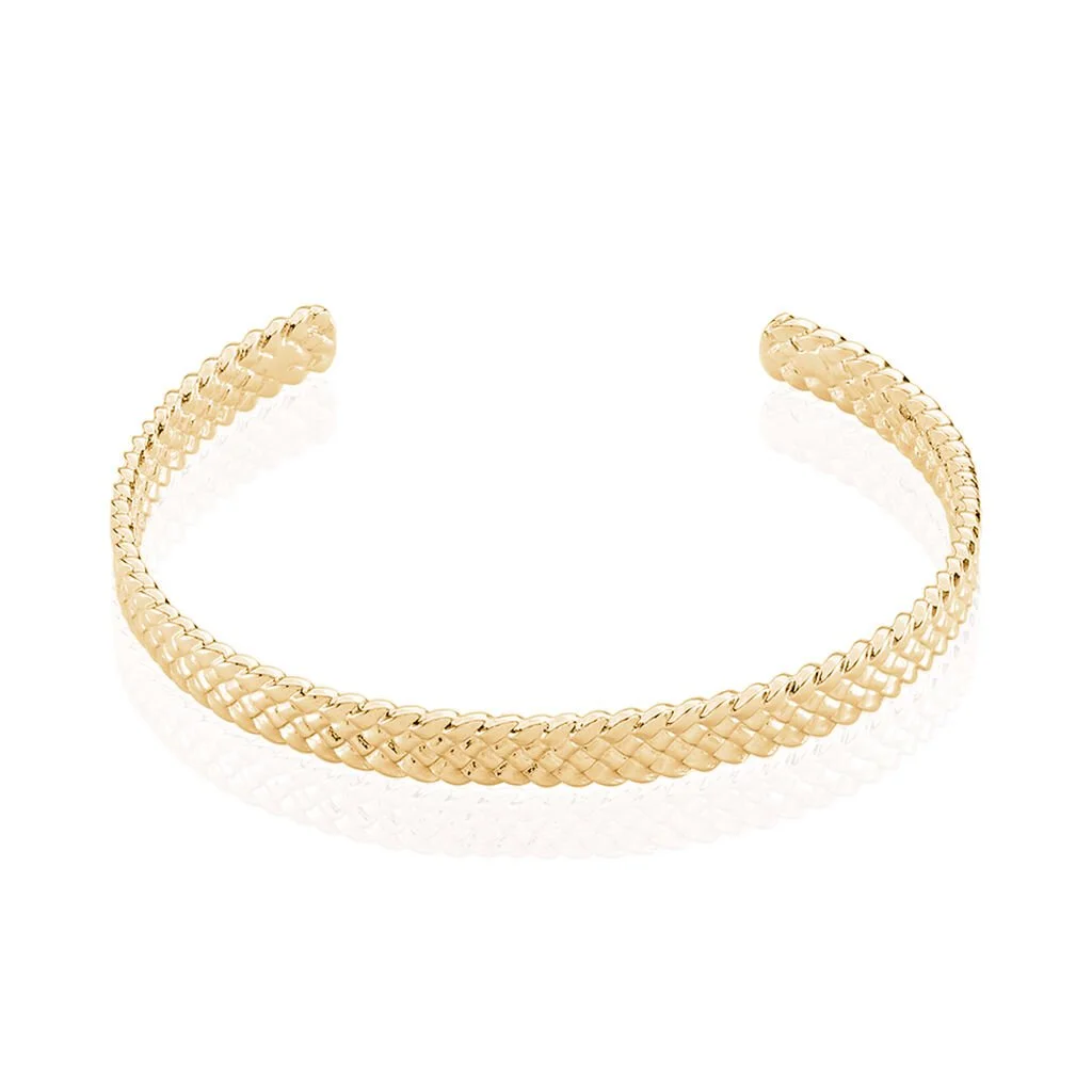 Bracelet Jonc Plaqué Or Jaune Ouvert Effet Tresse Diametre 55*45mm