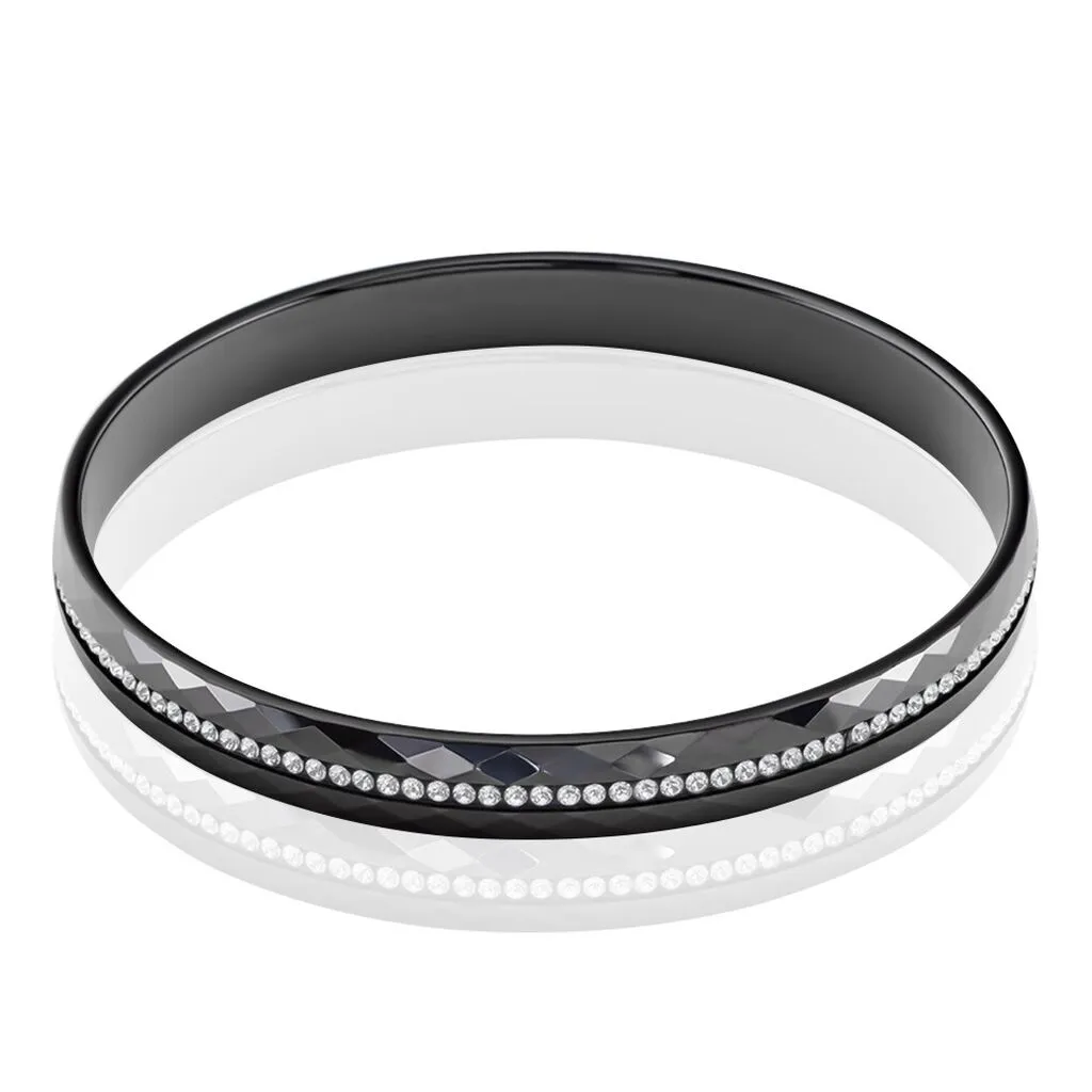 Bracelet Jonc Lola Cera Ceramique Noir Strass Et Céramique