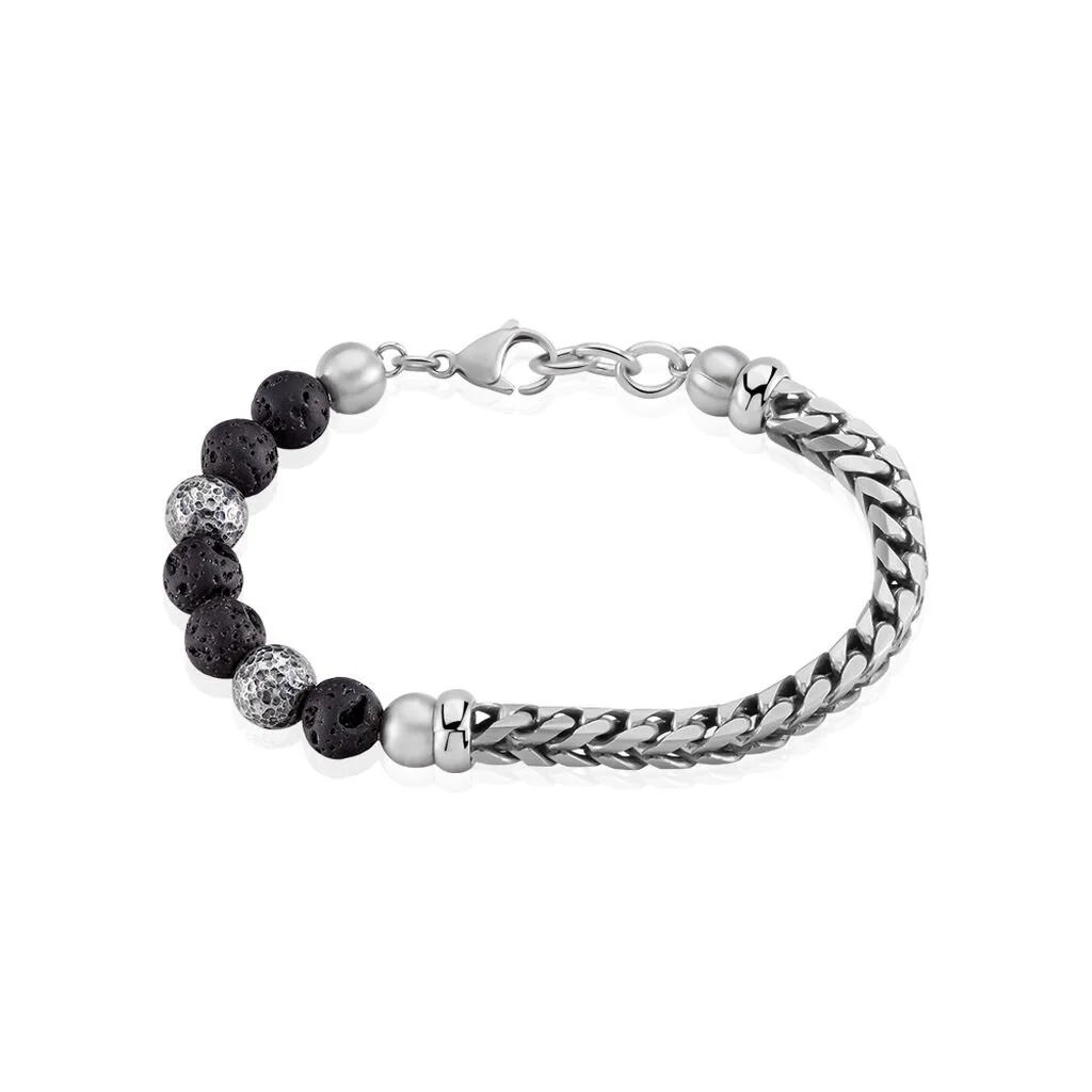 Bracelet Kiyo Acier Blanc Pierre De Lave