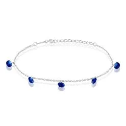Bracelet Argent Blanc 925/1000 Pampilles Oxydes Perce Bleus Maille Forcat 18cm