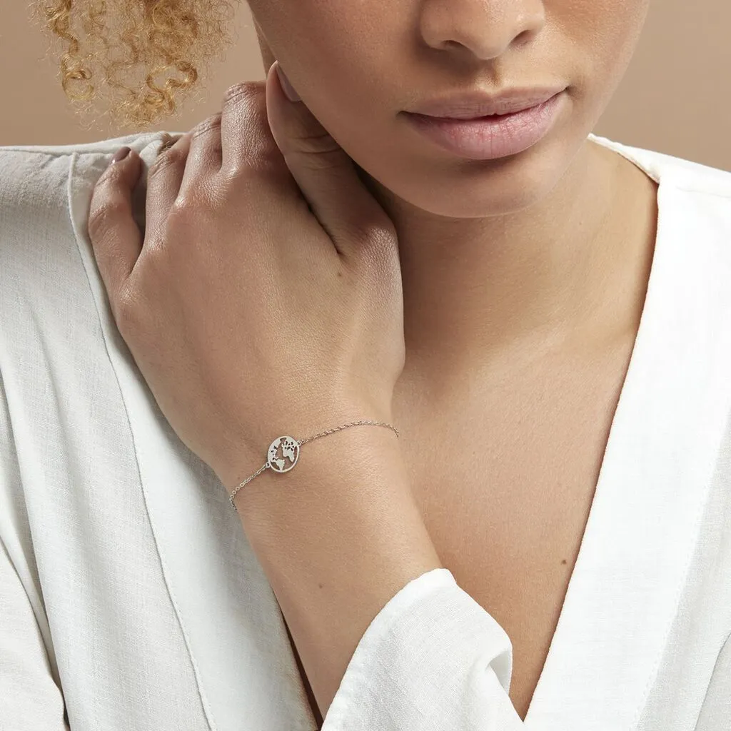 Bracelet Argent Blanc 925/1000 Carte Du Monde Maille Forçat 16cm