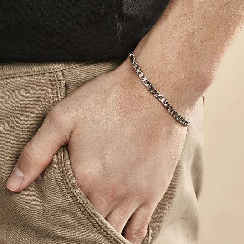 Bracelet Maille Argent Blanc 925/1000 Maille Gourmette Epaisseur 4.5mm 21cm