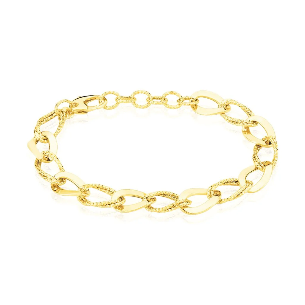 Bracelet Maille Or Jaune 375/1000 Maille Ovale Et Ronde Largeur 11.7mm 24cm