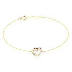 Bracelet Or Tricolore 375/1000 Triple Cœur Maille Forçat Or Jaune Micro Pavage Oxydes De Zirconium 15.5+1.5+1.5cm