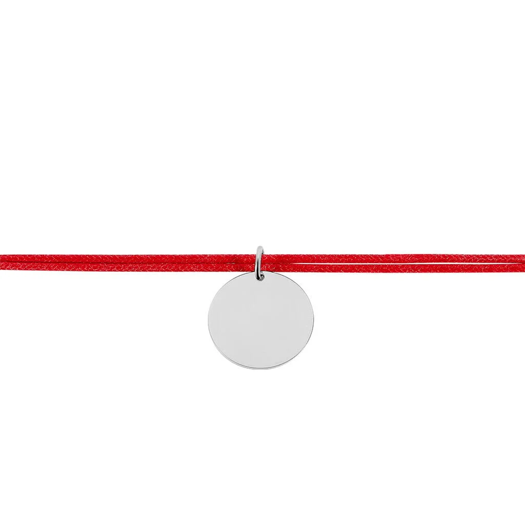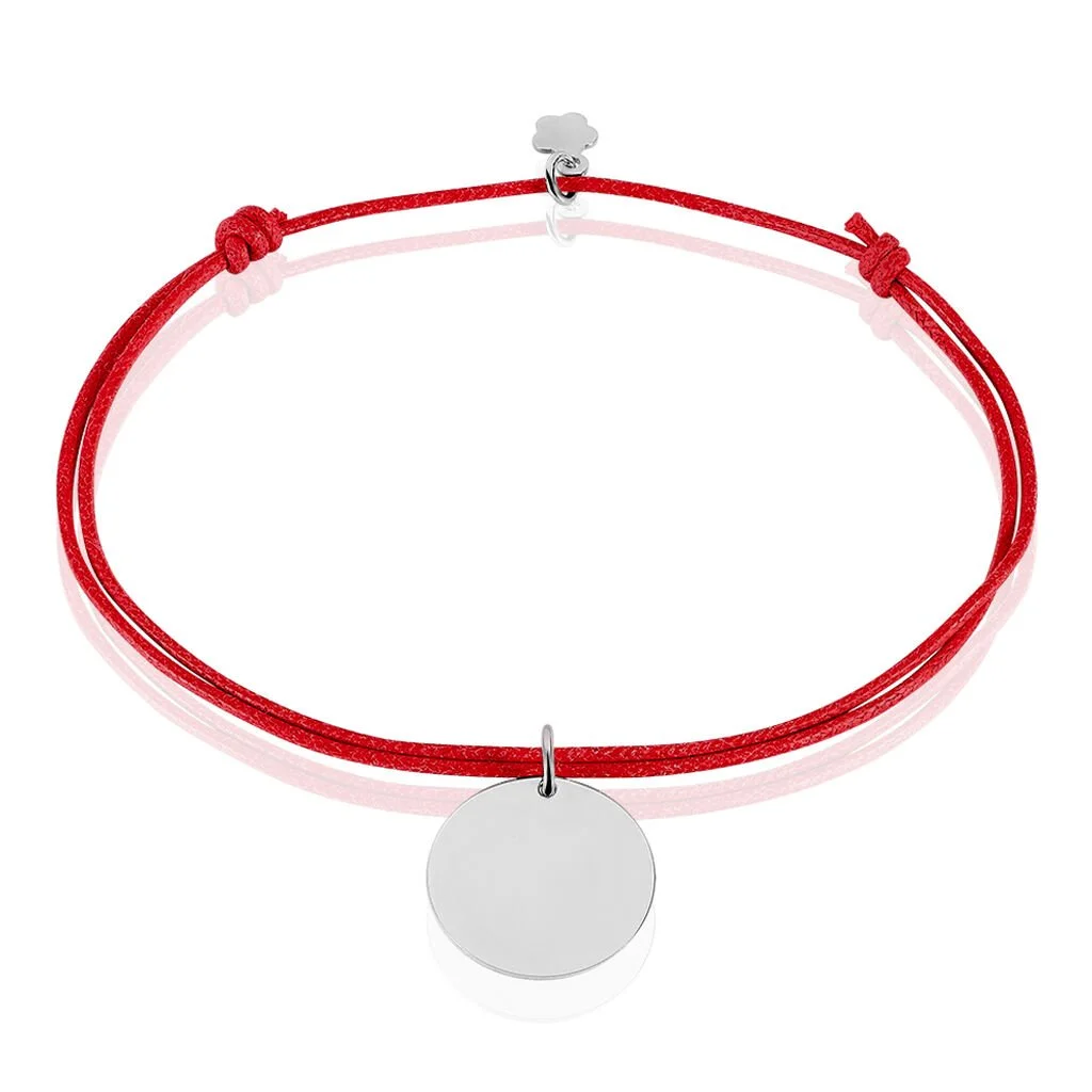 Bracelet Argent Blanc 925/1000 Pastille Cordon Rouge Ajustable